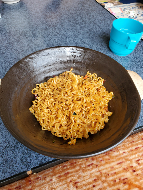 インスタントラーメンなので、熱辛いのです。
