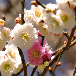 1本の木から色を咲き分ける珍しい梅もあります。